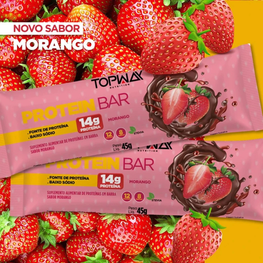 As Barras de Proteína Topway são a combinação perfeita entre sabor e saúde! Com 14g de proteína por porção, zero adição de açúcar e sem glúten, elas são ideais para quem busca um lanche nutritivo e delicioso.