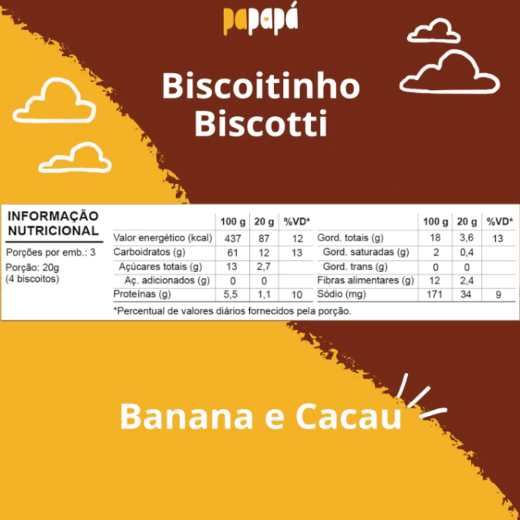 Embalagem: O Biscotti de Banana e Cacau contém 12 unidades.