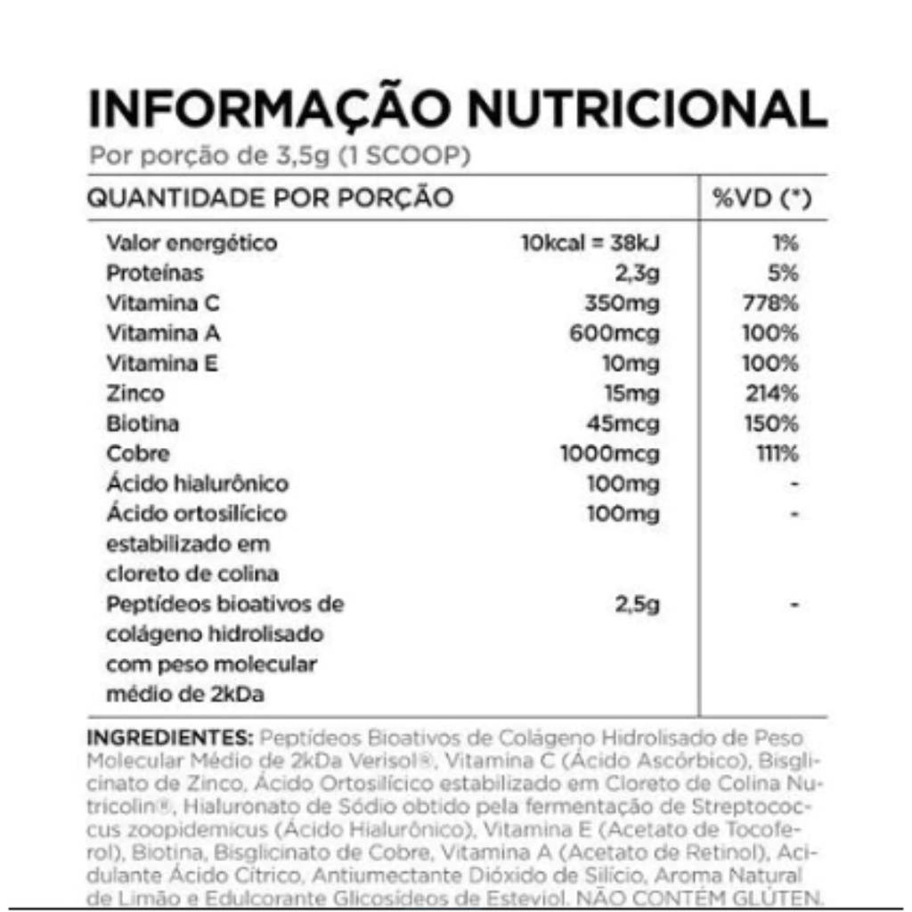 O Dermo Hyaluronic foi desenvolvido para te auxiliar no combate aos radicais livres, na firmeza da pele, suavização de rugas, redução de celulite, fortalecimento das unhas e cabelos entre outras funções, tendo como ativos o Colágeno Verisol, o silício biodisponível (Nutricolin) e o Ácido Hialurônico, além de contar com um mix de vitaminas para potencializar o efeito e a absorção.