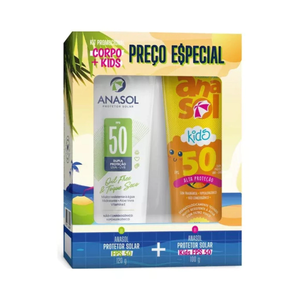Para os pequenos, o Kit Anasol também traz o Anasol Kids FPS50 de 100g, especialmente desenvolvido para a pele delicada das crianças.