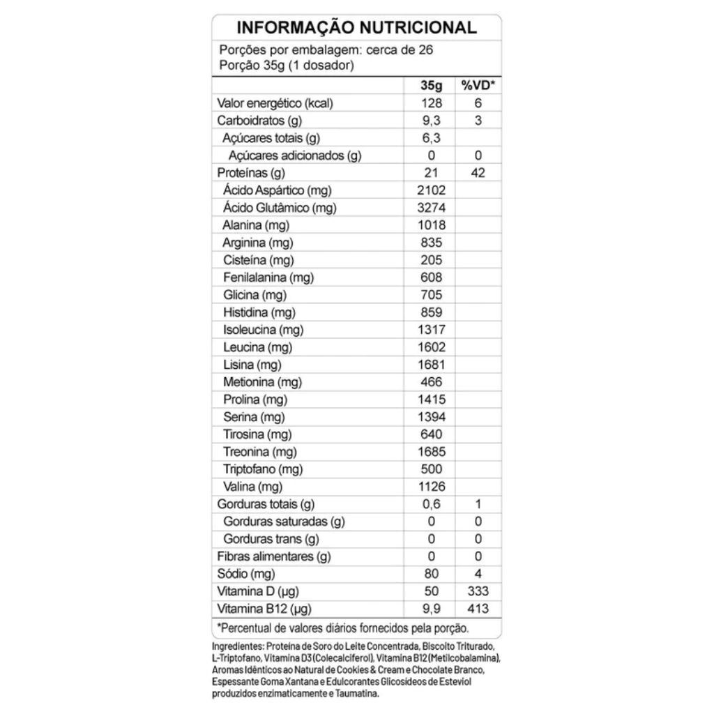 Suplementação Adequada: Cada dose de 35g do Whey Protein Cookies contém 21g de proteína de rápida absorção, ideal para quem busca resultados não apenas em performance, mas também na recuperação muscular. Com uma formulação focada na saúde integral, este produto se destaca como um aliado para quem deseja um equilíbrio nutricional.